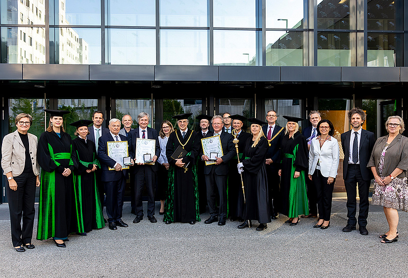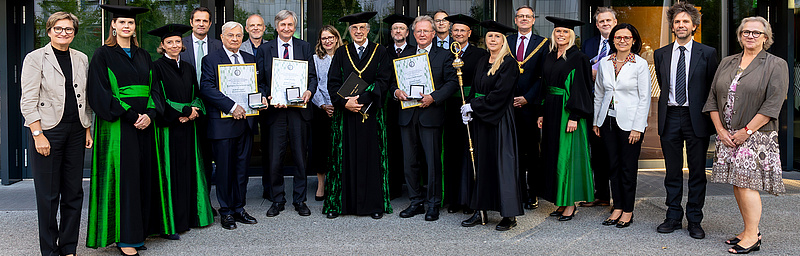 Die Med Uni Graz hat gestern drei herausragende Persönlichkeiten zu Ehren ihrer Verdienste um die Institution mit der Auenbrugger Ehrenmedaille ausgezeichnet. Gilbert Reibnegger, Josef Smolle und Karlheinz Tscheliessnigg erhielten im Rahmen eines Festaktes von Rektor Hellmut Samonigg die höchste Auszeichnung der Med Uni Graz verliehen. Es ist das erste Mal, dass diese Medaille für besondere Verdienste um die Med Uni Graz vergeben wurde.
