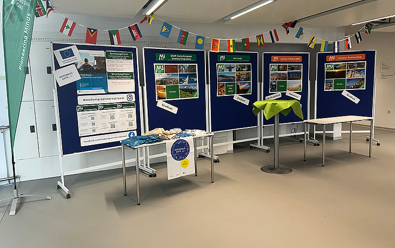 Mit rund 80 Besucher*innen stieß die Veranstaltung wieder auf reges Interesse. Die einzelnen Mobilitätsprogramme der Med Uni Graz wurden in einer Kurzpräsentation vorgestellt, danach informierte und beriet das Team des International Office Interessierte bei Info-Ständen und beantwortete sämtliche Fragen zu Zielländern, Partnerinstitutionen, Fördermöglichkeiten, Bewerbungsverfahren u.v.m. Med Uni Graz-Studierende, die bereits einen Auslandsaufenthalt absolviert haben, berichteten außerdem über ihre Erfahrungen und gaben hilfreiche Tipps. Im Rahmen des International Day feierte das International Office auch die #ErasmusDays, eine europaweite Initiative mit dem Ziel, die zahlreichen Möglichkeiten des Erasmus-Programms zu verbreiten und den Erfolg von Erasmus+ zu feiern.