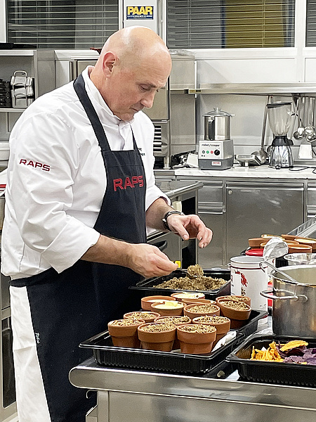 Die Schwerpunkte der Kochworkshops lagen auf der alltäglichen und saisonalen Einbeziehung der mediterranen Ernährung. Dabei wurden einige Lebensmittel besprochen, die die Therapie unterstützen können: beispielsweise Lebensmittel mit hohem Gehalt an Ballaststoffen, fermentierten Produkten, gewissen Eiweißen (wie Tyrosin und L-Tryptophan als Grundlage zur Bildung der Nervenbotenstoffe Serotonin, Dopamin und Noradrenalin) und Omega-3-Fettsäuren. Auch Gewürze mit nachgewiesenen antidepressiven Effekten wie etwa Safran oder Kurkuma wurden eingesetzt. „Unserem Team war es vor allem auch wichtig, Ideen und Möglichkeiten aufzuzeigen, um jene Lebensmittel nachhaltig in den Alltag zu integrieren“, beschreibt Sonja Lackner. Das ausgewogene Menü beinhaltete Rezepte des diätetischen Kochs und Ernährungstherapeuten Attila Varnagy, die sowohl unter Beachtung von Aspekten der mediterranen Ernährung, als auch unter kulinarischen und genusstherapeutischen Gesichtspunkten zusammengestellt wurden, um alle fünf Sinne zu aktivieren: prickelnde Weintrauben, gegrillte Kürbissülze auf Kimchi, Pastinakensuppe mit gerösteten Walnüssen sowie Tofu-Gemüse-Curry mit Rosinenreis und Vollkornnudeln mit Tomaten und Feta.