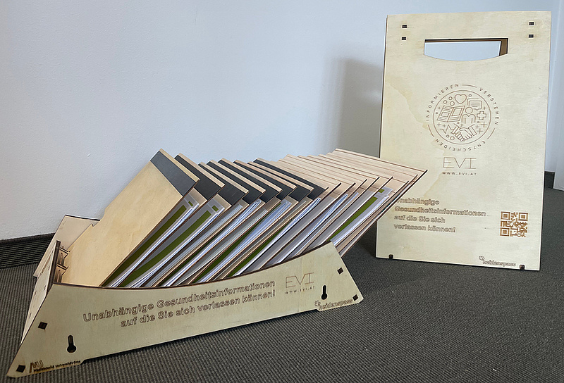 Aufbauend auf den Erfahrungen aus dem Pilotprojekt (2018-2021) wurde die EVI-Initiative überarbeitet und ausgeweitet. Die EVI-Boxen werden nun neben Hausarztpraxen auch in Kinderarztpraxen und weiteren leicht zugänglichen Standorten zur Verfügung stehen. Zusätzlich sind die Gesundheitsinformationen auf der EVI-Webseite abrufbar. EVI ist eine Initiative des Instituts für Allgemeinmedizin und evidenzbasierte Versorgungsforschung wird bis Ende 2024 aus Mitteln des Gesundheitsfonds Steiermark gefördert.