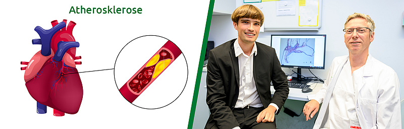 Atherosklerose ist ein chronisch entzündlicher Prozess, bei dem es zur Ansammlung von Cholesterin, Entzündungszellen und Vermehrung von Bindegewebe in der Zellwand von Blutgefäßen kommt. In der Folge entstehen hierdurch sogenannte atherosklerotische Plaques in der Gefäßwand, durch welche der Querschnitt von Arterien verengt werden kann und die Durchblutung der Herzkranzgefäße beeinträchtigt werden kann. Wenn die Oberfläche eines Plaques aufreißt, kann es gar zu einem akuten kompletten Verschluss, also einem Herzinfarkt, kommen. Weitere häufige Komplikationen, denen eine Atherosklerose der Schlagadern zugrunde liegt, sind die periphere arterielle Verschlusskrankheit und der Schlaganfall. Insgesamt gesehen gehören atherosklerotische Erkrankungen zu den häufigsten Erkrankungen und stellen die häufigste kardiovaskuläre Todesursache dar.