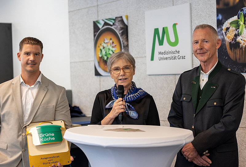 "Die Mensa der Med Uni leistet mit ihrem Angebot einen wertvollen Beitrag für eine bessere Zukunft - für unsere Gesundheit und unsere Umwelt. Die Auszeichnung "Grüne Küche" würdigt diese Leistung des Mensa-Teams der Med Uni um ein ausgewogenes Speisenangebot", freut sich Sura Dreier von Styria vitalis über einen weiteren, ausgezeichneten Vorzeigebetrieb.