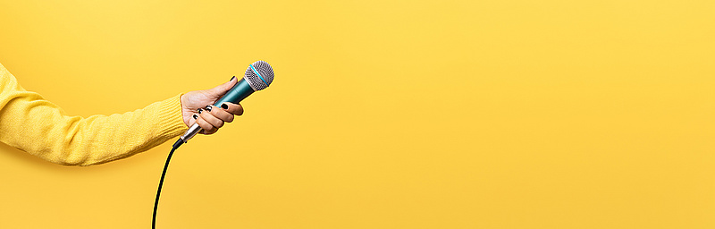 Mikrophon vor gelbem Hintergrund Mikrophon vor gelbem Hintergrund Mikrophon - alesmunt/adobe.stock.com