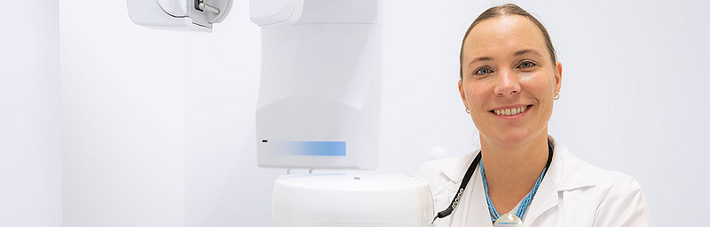 Gegenstand des jüngsten Forschungsprojektes von Barbara Kirnbauer war die digitale Volumentomographie, mit der es gelingt, dreidimensionale Röntgendatensätze der Kiefer und angrenzenden Strukturen zu erstellen. Konkret ging es darum, wie gut ein neu entwickeltes künstliches neuronales Netzwerk krankhafte Veränderungen im Kieferknochen rund um die Wurzelspitze erkennen kann. Die Interpretation der Röntgendatensätze ist zeitaufwendig, verlangt viel Expertise und kann bei Fehlern gravierende Folgen für die Gesundheit der Patient*innen nicht nur im Kieferbereich haben. Man weiß bereits, dass der Einsatz von künstlicher Intelligenz das Potenzial hat, Fehlerquellen zu reduzieren, die Sicherheit zu erhöhen und zeitliche Ressourcen von Mediziner*innen zu schonen.
