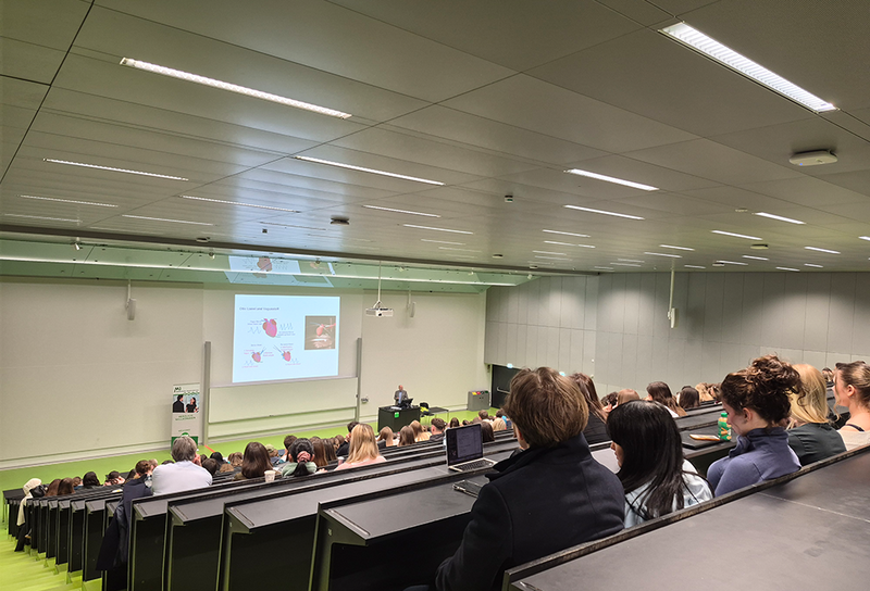 Der Tag startete im Hörsaal 1 mit einer offiziellen Begrüßung und einer Reihe kompakter Präsentationen zu den Studienrichtungen Humanmedizin, Zahnmedizin, Interprofessionelle Gesundheits- und Pflegewissenschaften sowie Psychotherapie. Auch das Aufnahmeverfahren für die Studienrichtungen wurde ausführlich erläutert. Im Anschluss gab es die Möglichkeit die Vorlesungen „Von der Idee zum Medikament“ und „Zellen – Basiseinheit des Lebens“ zu besuchen. Weiters konnten sich die Studieninteressierten im Vorfeld auch zu Führungen anmelden. Die geführten Rundgänge durch verschiedene Einrichtungen der Universität, wie Medizinische Chemie oder Pathologie ermöglichten Einblicke in Laborbereiche, die sonst nur Studierenden und Forschenden zugänglich sind. Zwischen den Programmpunkten standen Studierende, Lehrende und die ÖH Med Graz für persönliche Gespräche zur Verfügung. Viele Studieninteressierte nutzten diese Gelegenheit, um sich über den Studienalltag und organisatorische Abläufe zu informieren.