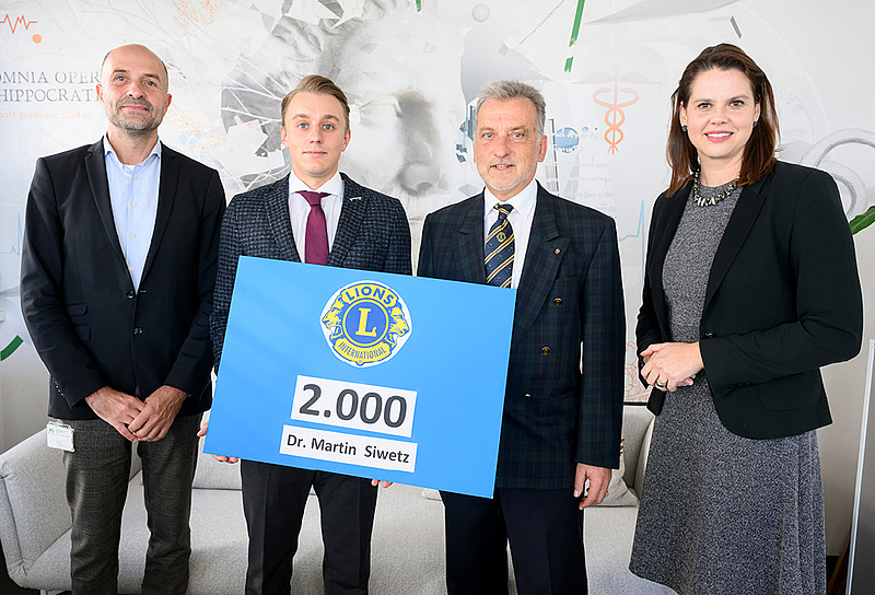 Die Medizinische Universität Graz ist dem Lions Club Graz Schlossberg außerordentlich dankbar für die Überreichung des Preisgeldes und gratuliert Martin Siwetz sehr herzlich!