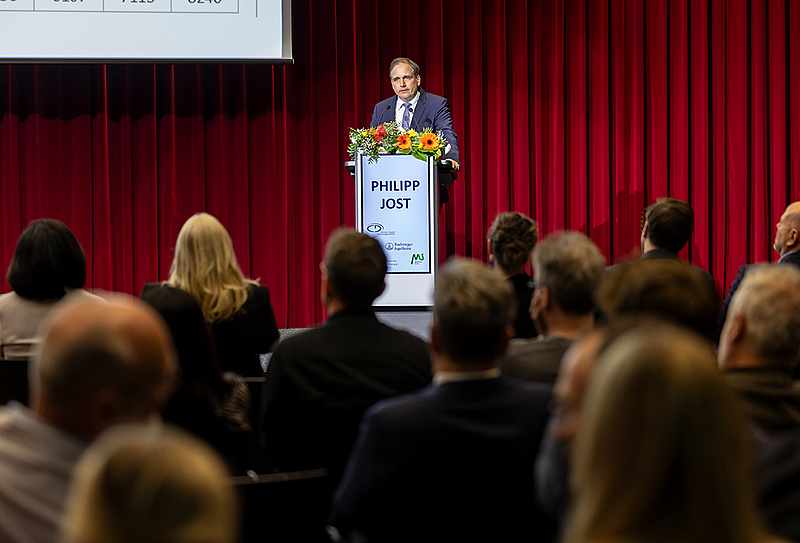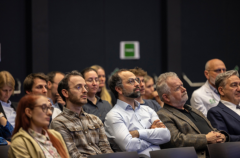Die Veranstaltung wurde durch Rektorin Andrea Kurz offiziell eröffnet. In ihren Worten betonte sie die Bedeutung der Christian-Doppler-Labore als Brücke zwischen exzellenter Grundlagenforschung und industrieller Anwendung. Im Anschluss folgten Grußworte von Peter Prenninger, Vizepräsident der Christian Doppler Forschungsgesellschaft & AVL List GmbH, Akos Heinemann, Vizerektor für Forschung der Med Uni Graz, Lars-Peter Kamolz, Stellvertretender Ärztlicher Direktor des Universitätsklinikums Graz, Alexander Rosenkranz, Vizerektor für Klinische Angelegenheiten, Innovation und Nachhaltigkeit der Med Uni Graz sowie Mark Pearson, Senior Scientific Director External Innovation, Boehringer Ingelheim RCV. Alle Redner hoben die strategische Bedeutung des neuen CD-Labors hervor – insbesondere im Hinblick auf die Entwicklung neuer Therapieansätze für das nicht-kleinzellige Lungenkarzinom (NSCLC), eine der weltweit häufigsten und aggressivsten Tumorarten. Ein Video-Rundgang bot den Gästen erste Eindrücke der Forschungsinfrastruktur und der wissenschaftlichen Schwerpunkte des Labors. Im Anschluss präsentierten die beiden Principal Investigators Michael Dengler und Philipp Jost ihre Forschungsprogramme. Beide betonten, wie wichtig es ist, Mechanismen der immunogenen Zellsterblichkeit besser zu verstehen, um Tumorzellen für das Immunsystem „sichtbarer“ zu machen und so langfristig wirksamere Therapien zu entwickeln. Als wissenschaftlicher Höhepunkt folgte die Keynote von Ulrich Keller (Charité Berlin), der über aktuelle Herausforderungen und Chancen der klinischen Translation in der Krebsmedizin sprach. Er zeigte auf, wie eng Grundlagenforschung, klinische Studien und industrielle Entwicklung verzahnt sein müssen, um neue Therapien erfolgreich zu Patient*innen zu bringen. Nach den abschließenden Worten der Laborleiter bot ein Flying Dinner Gelegenheit zum Austausch. Die Gäste nutzten die Möglichkeit, sich zu vernetzen und zukünftige Kooperationen zu vertiefen.