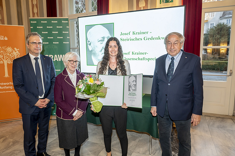 Die Josef Krainer-Wissenschaftspreise 2026 wurden durch den Obmann des Gedenkwerkes, Präsident Gerald Schöpfer, gemeinsam mit Rektor Peter Riedler (Universität Graz) sowie Dorli Jaufer, der Tochter Josef Krainers senior, überreicht.